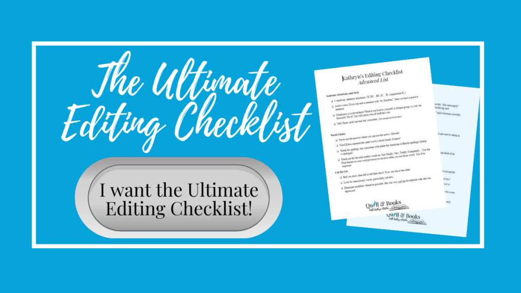 You can also get access to my Writer’s Resources Vault. This is a password protected page with links to a TON of resources including forms I use with my writing. (forms I sell on Etsy but you get them ALL for free!) It contains two editing checklists, a self publishing checklist, writing group resources, and much more.